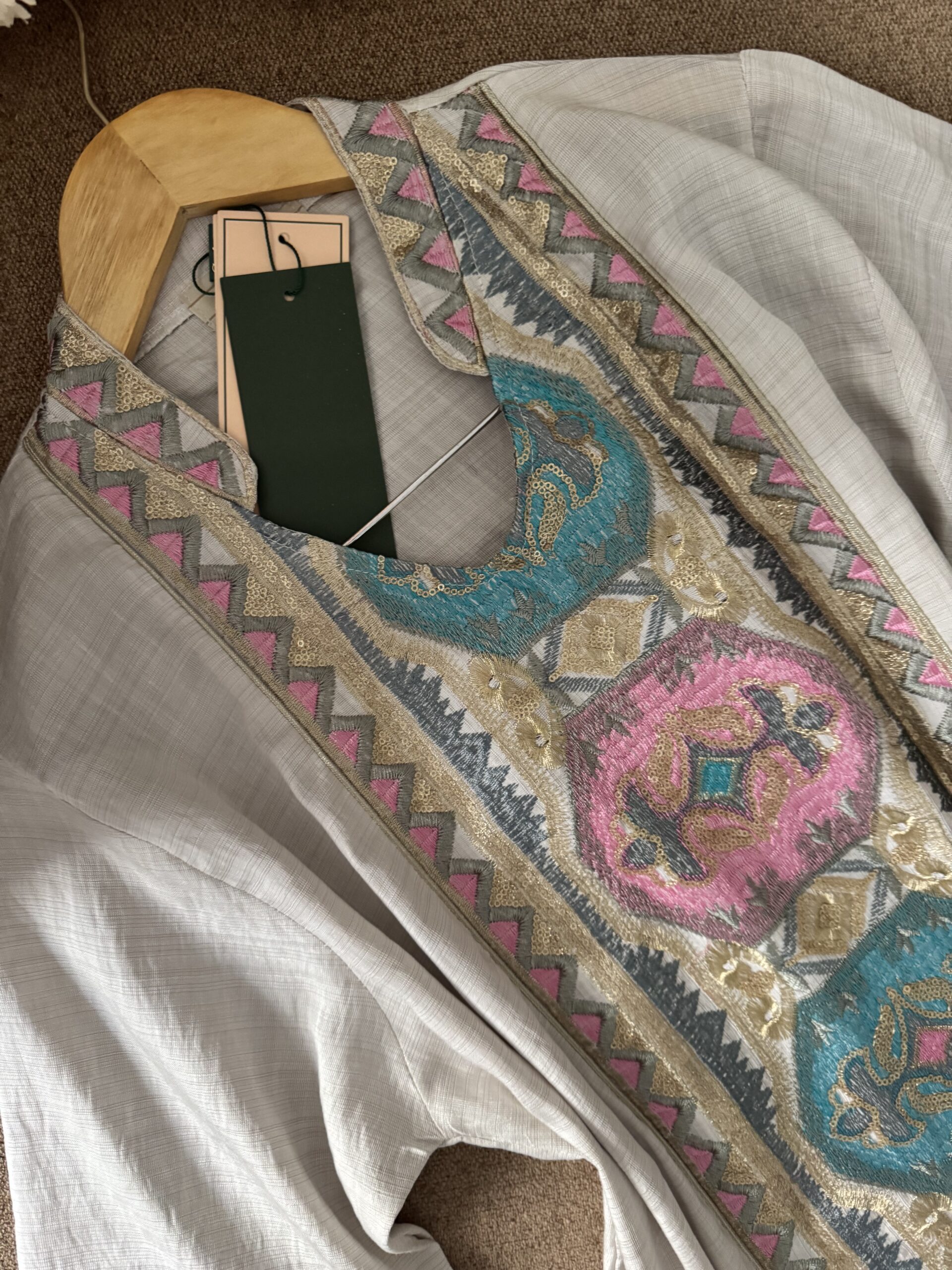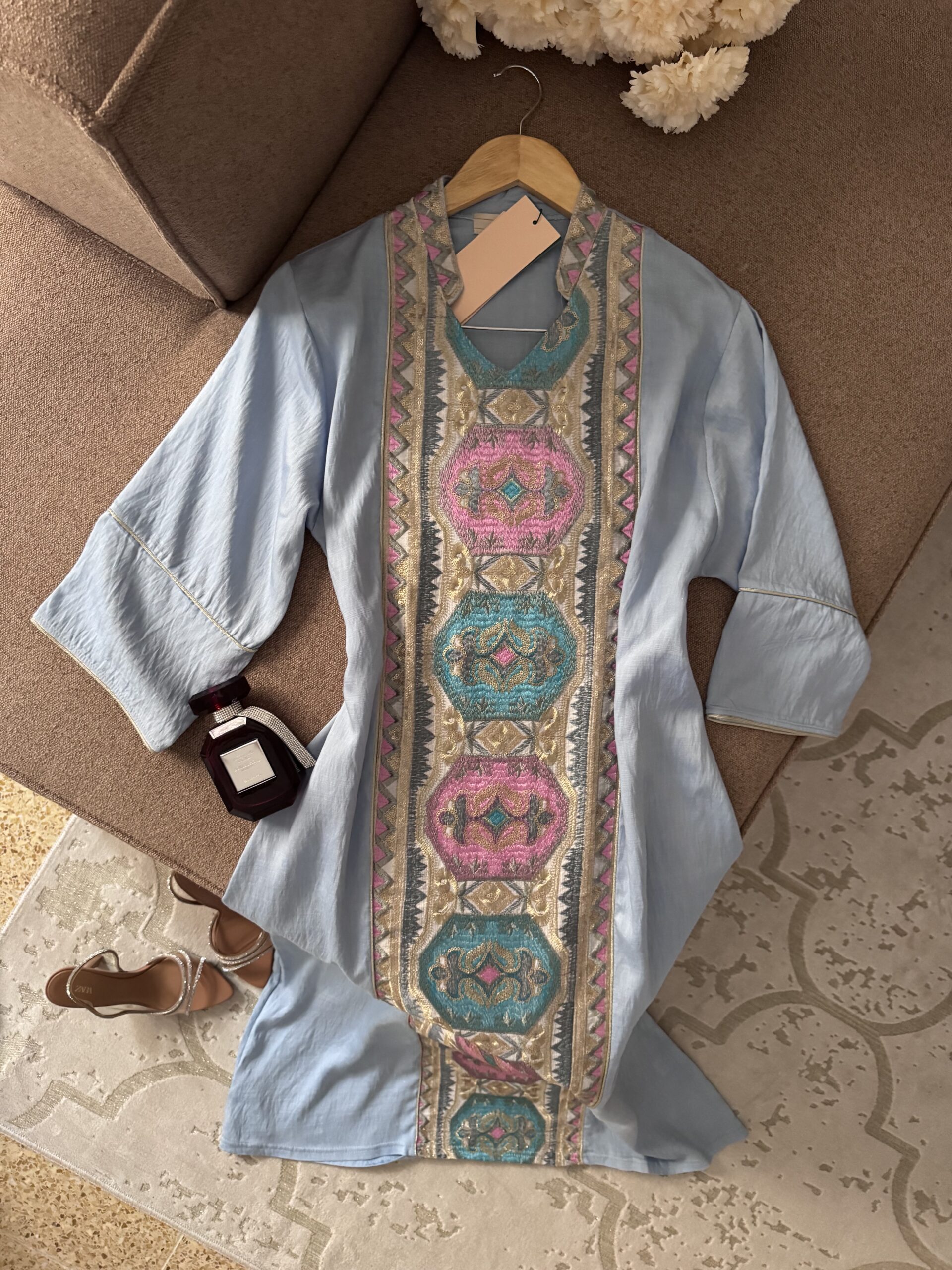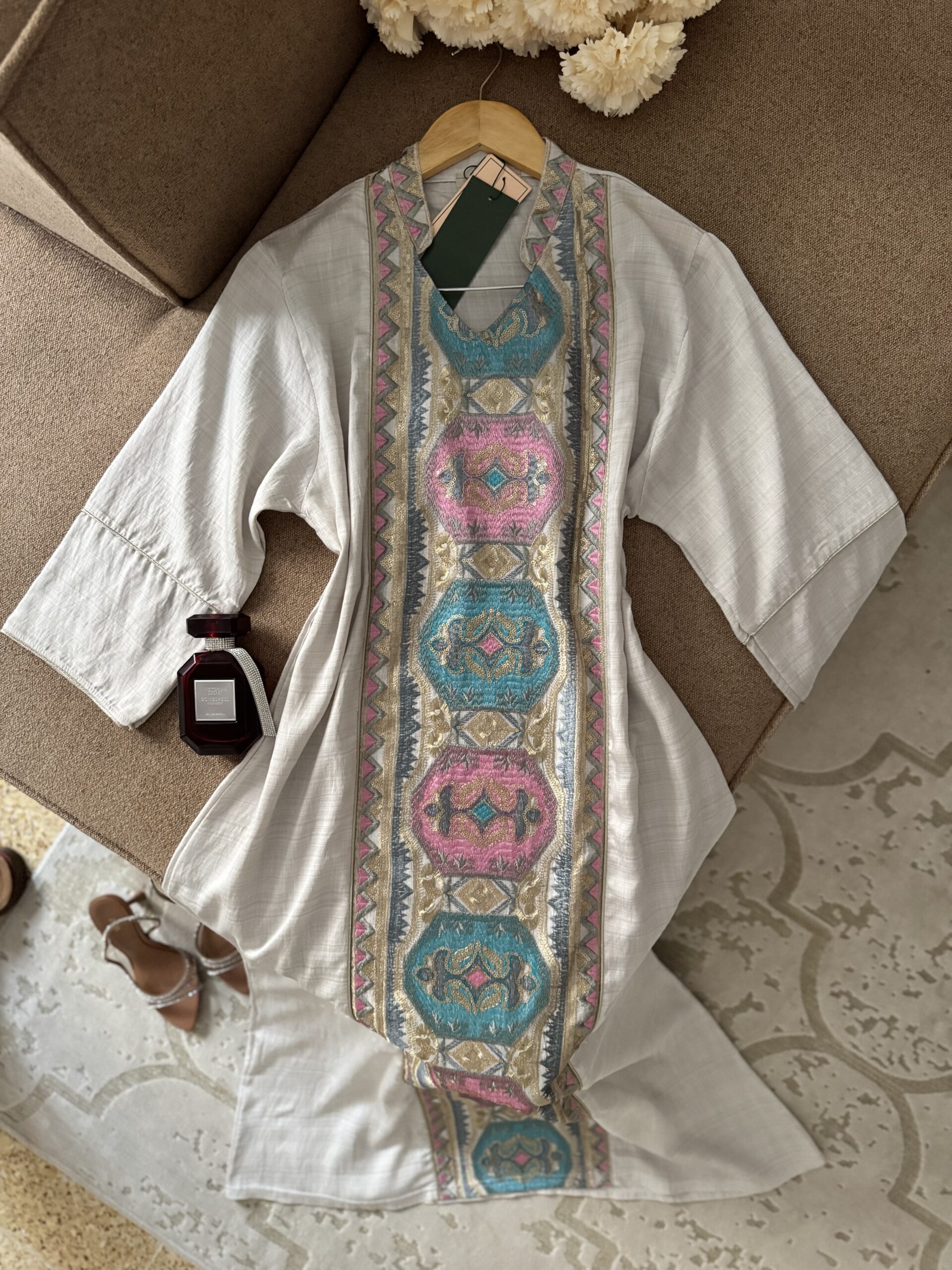Robe Daraa mosaïqueد.ج5,400.00 Color Choisir une optionBeigeBleu ciel Size Choisir une optionM38-40L42-44XL46-48XXL48-50M38-40L42-44XL46-48XXL48-50Effacer - quantité de Robe Daraa mosaïque + Buy Now UGS : ND Catégorie : New Collection Description Informations complémentaires Avis (0) Description 80% Rayon / 20% Polyamide Informations complémentaires Color Beige, Bleu ciel Size M38-40, L42-44, XL46-48, XXL48-50 Avis Il n’y a pas encore d’avis. Soyez le premier à laisser votre avis sur “Robe Daraa mosaïque” Annuler la réponseVotre adresse e-mail ne sera pas publiée. Les champs obligatoires sont indiqués avec *Votre note * Évaluation... Parfait Bon Moyen Pas mal Très mauvais Votre avis *Nom * E-mail * Enregistrer mon nom, mon e-mail et mon site dans le navigateur pour mon prochain commentaire. Produits similaires Robe Kamkha Modèle 1 د.ج4,500.00 Choix des options Ce produit a plusieurs variations. Les options peuvent être choisies sur la page du produit Robe Midi Fluide à Fleurs د.ج4,350.00 Choix des options Ce produit a plusieurs variations. Les options peuvent être choisies sur la page du produit Robe Tiramisu à fleurs د.ج2,900.00 Choix des options Ce produit a plusieurs variations. Les options peuvent être choisies sur la page du produit Robe TU taille M د.ج1,000.00 Choix des options Ce produit a plusieurs variations. Les options peuvent être choisies sur la page du produit
